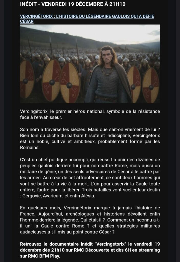 Vendredi 19 décembre 2025, sera diffusé à 21h10 sur la chaîne RCM Découverte, le documentaire « Vercingétorix, l’histoire du légendaire gaulois qui a défié César » avec la participation de Sabine Lefebvre (UMR ARTEHIS)