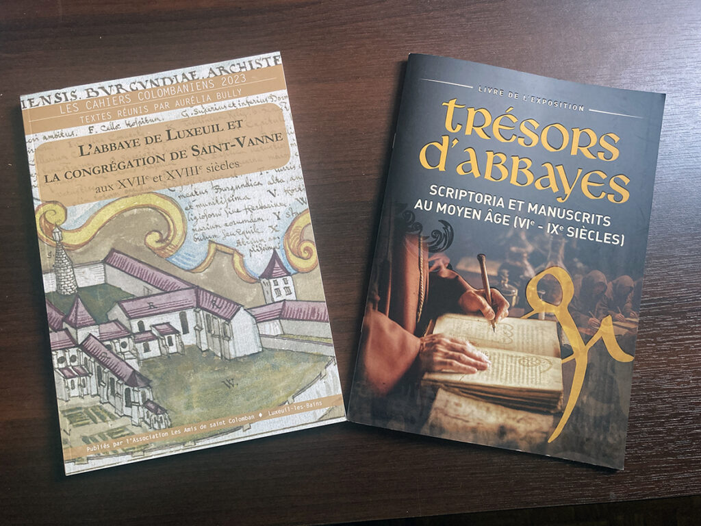 La publication de la table ronde de 2023 dans Les Cahiers Colombaniens, sous la direction d’Aurélia Bully, et le livret de l’exposition Trésors d’abbayes édité par Florence Herzinger et Guillaume Nissou de l’&cclesia à l’OT de Luxeuil, avec une présentation du programme de l’UMR Artehis, Burgundia Scripta Merovingica porté par Aurélia Bully et Dominique Barbet-Massin.