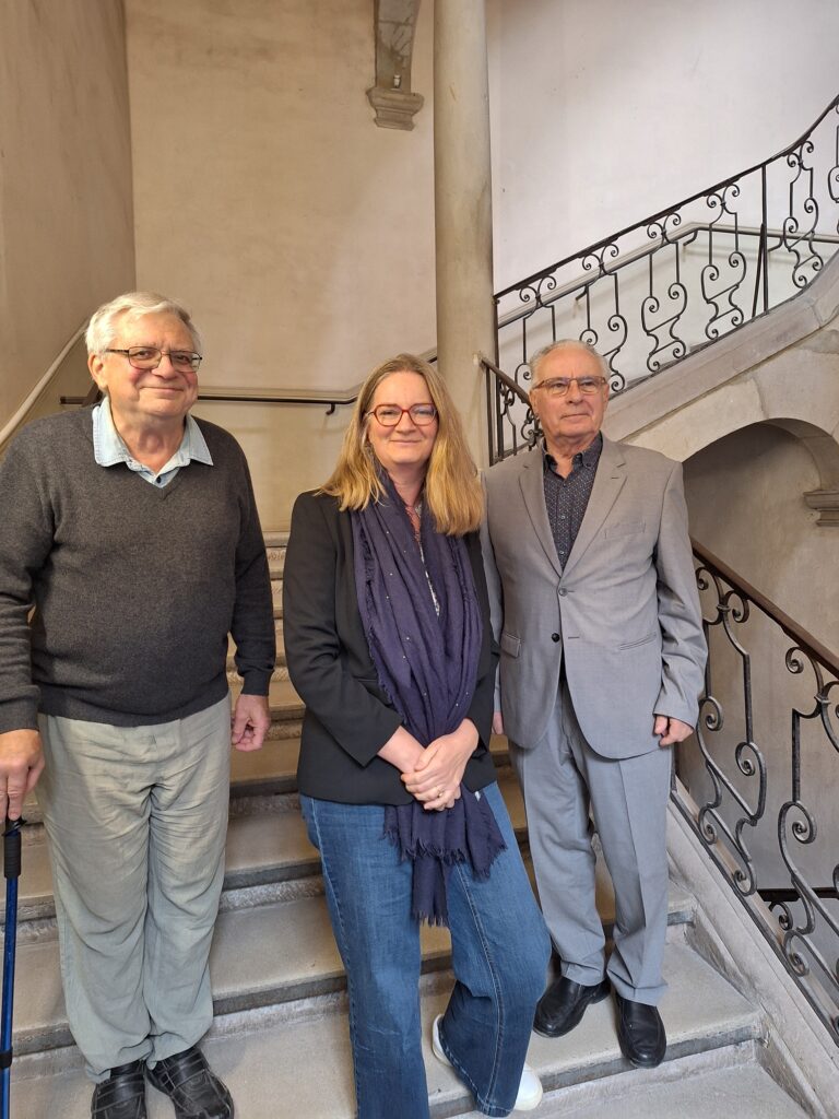 De gauche à droite, Alain Dubreucq, Pr. émérite université Lyon 2, Aurélia Bully, chercheure associée UMR Artehis, Jacques Prudhon, Président des Amis de saint Colomban.